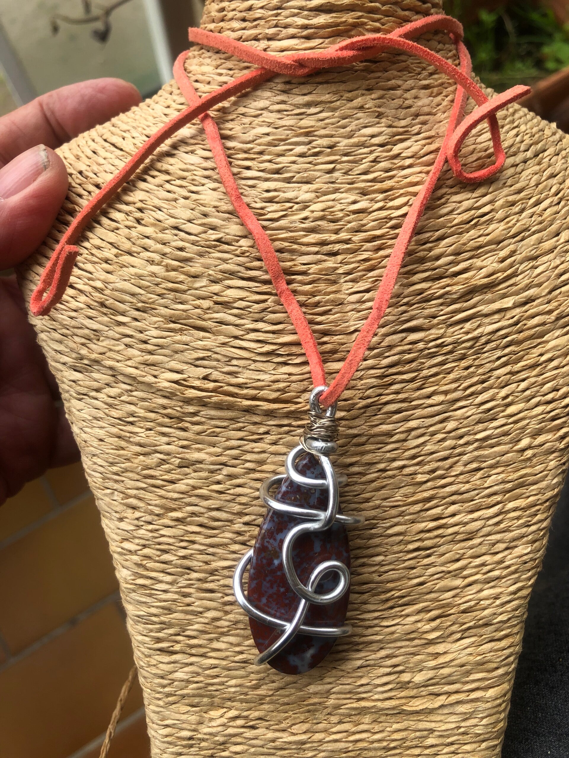 Pendentif Druidesse and Druid agate mousse rouge